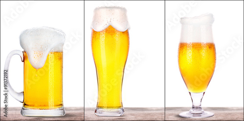 Frosty glasses of light beer isolated