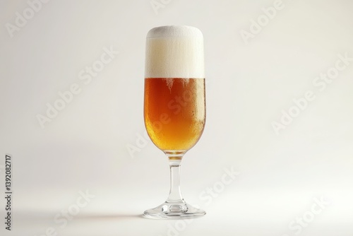 Frothy amber beer in a stemmed glass refreshing beverage light background condensation details isolated on transparent background