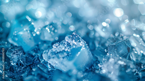 Frozen Crystals Reflecting Light in a Stunning Blue Background