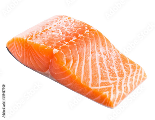 Frozen Salmon Fillet with Ice Crystals, Freshness Concept, Isolated on Transparent Background