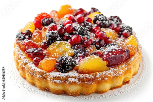 eatery, serving, fruit, cake, isolated, white, background, exquisite, round, tart, pastry, vanilla, sugar, sour, cream, purple, berry, mint, pear, shortbread, lemon, peel, tasty, receipe, meal, menu, epicure, classic, confectionery, course, plate, strawberry, baked, honed, delicious, sweet, dessert, red, pie, portion, food, high, generative, ai, illustration
