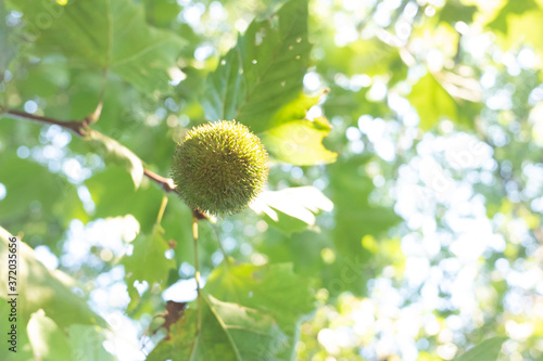 Fruit of Platanus tree in summer