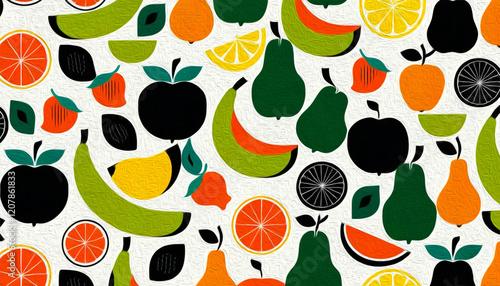Fruit pattern for printing on wall decorations, covers, wallpapers, fabrics. Minimalist shapes. Oil paint