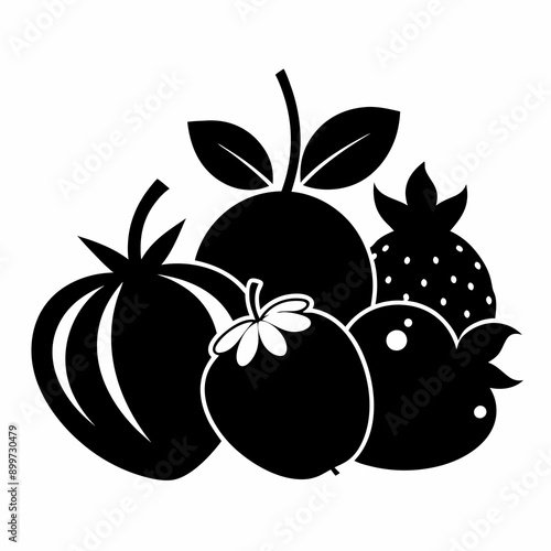 fruit, silhouette, vector, illustration, leaf, black-and-white, clip art, cut-out, funky, no people, ornate, owl, product, silhouette, slice, sparse, springtime, vitamin, asparagus, cauliflower, design element, grape, penguin, pepper, tomatoes, vegetable, fruits and vegetables, vegetable