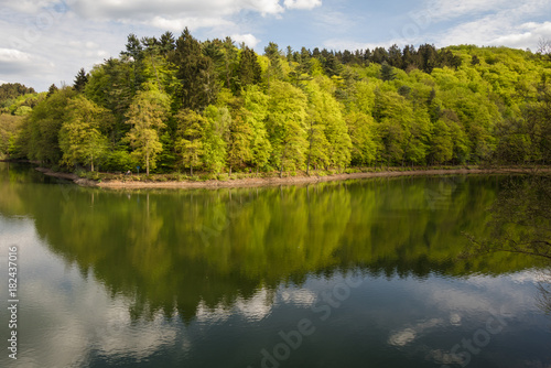 sauerland, dam, water, body of water, countryside, nature, season, spring, forest, forest, tree, tree, heaven, blue, yellow, green, orange, brown, ease, recreation, relaxation, tour tourism, hike
