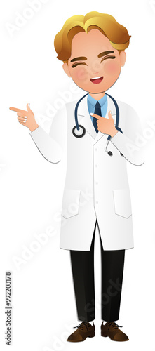 full body length cartoon character men doctor wears white coat at Hospital for healthcare services