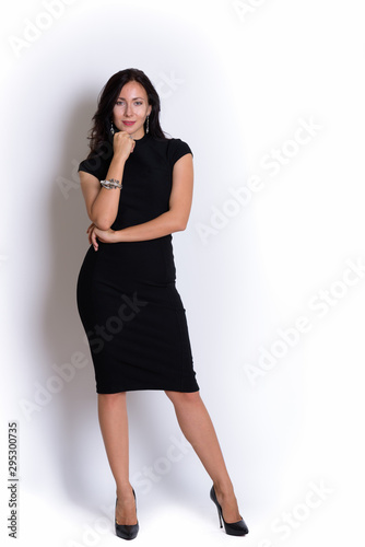 portrait, woman, 20s, adult, attractive, background, beautiful, body, business, businesswoman, chin, dress, executive, female, full, hand, idea, indoor, inside, lady, length, looking, 1, pensive, people, person, standing, studio, thinks, thinking, thoughtful, vertical, young