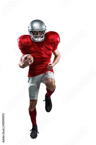 young adult, man, male, caucasian, isolated, football player, quarterback, sport, competitive sport, blue, competition, stern, focused, holding, helmet, confidence, cut-out, standing, protection, safety, athlete, team sport, sportsman, headwear, jersey, white background