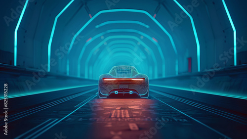 Full of technology line sense of the car in a symmetrical line technology space, through the future,generative ai