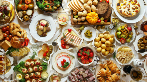 food, meal, table, plate, buffet, dish, eatery, salad, dinner, cheese, fruit, delicious, cookery, banquet, meat, lunch, epicure, fish, red, healthy, breakfast, vegetable, snack, white