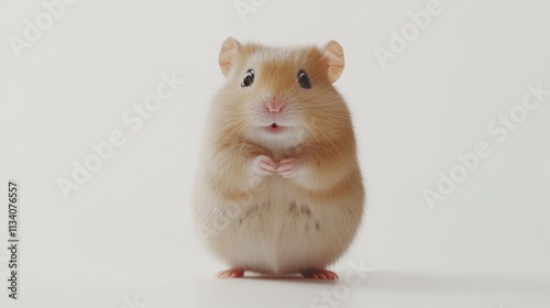 hamster, animal, pet, cute, small, rodent, fluffy, domesticated, furry, playful, standing, upright, mammal, companionship, nature, white background, adorable, studio, expression, behaviour, habitat, captive, closeup, portrait, whisker, paw, sitting, inquisitive, macro, curiosity, simplicity, joy, vibrant, fun, active, personality, young, love, family, environment, health, wellness, excitement, isolation, uniqueness, happiness, texture