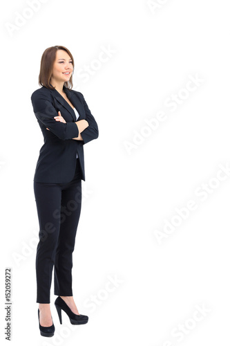 Full-length profile of businesswoman isolated on white.