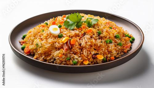 fully juicey American fried rice ,rice spread,Aerial view on a white background