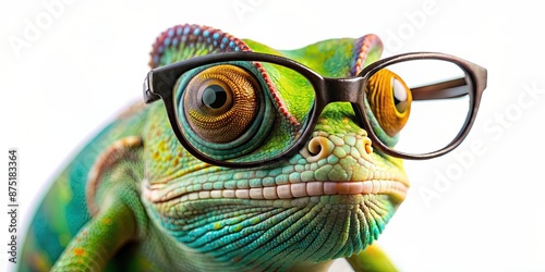 Funny chameleon wearing glasses, chameleon, funny, glasses, humor, reptile, camouflage, quirky, cute, animal, colorful
