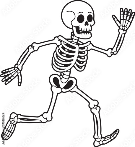 Funny Dancing Skeleton Silhouette Vector Illustration Spooky Halloween Skeleton in Dynamic Dance Pose Dancing Bones Silhouette for Halloween Party Design Creepy Cartoon Skeleton Vector in Motion H