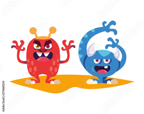 funny monsters couple comic characters colorful