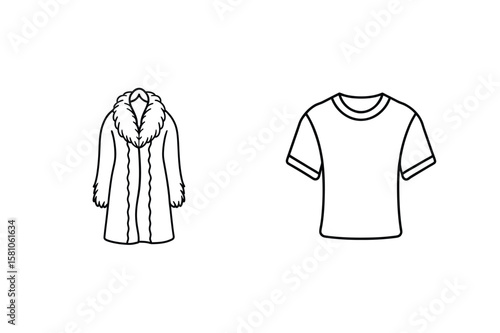 fur coat, t-shirt, clothing, apparel, fashion, casual clothes, outerwear, garment, textile, fabric, style, design, illustration, line art, drawing, black-and-white, simple, clean, graphic, icon, symbol, outfit
