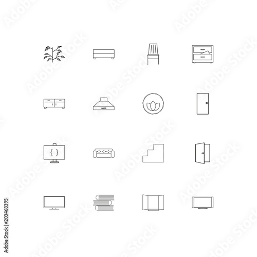 book, door, closed, chair, closet, monitor, television, display, stair, plant, flower, code, computer, sofa, leaf, furniture, icon, vector, illustration, set, pictogram, symbol, signs, design, art