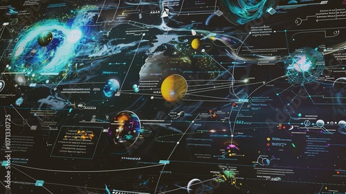 Future Universe Concept Map - a visionary and imaginative visual. The concept map depicts a futuristic universe, illustrating innovative ideas and celestial elements in a captivating manner.