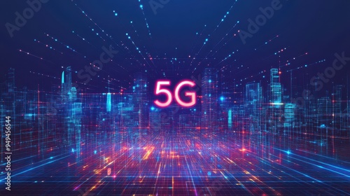 Futuristic 5G Network Cityscape - Digital Technology Background