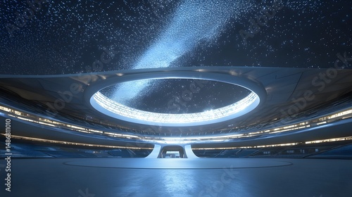Futuristic arena design with starry sky roof and modern architecture for sports and entertainment