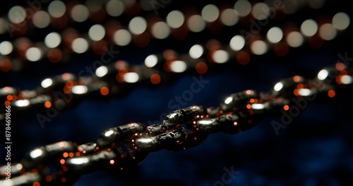 Futuristic Blockchain Concept with Glowing Blue Bokeh and Chain Links