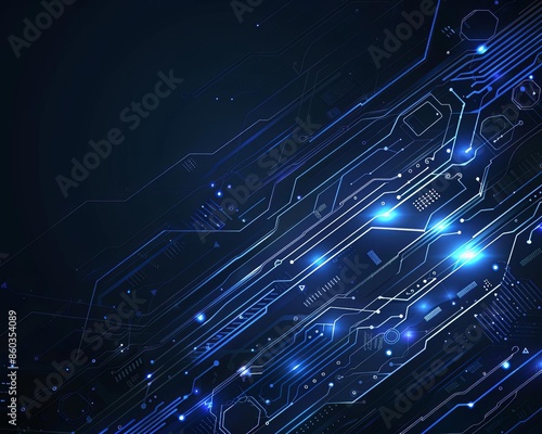 Futuristic Blue Circuit Board with Glowing Details