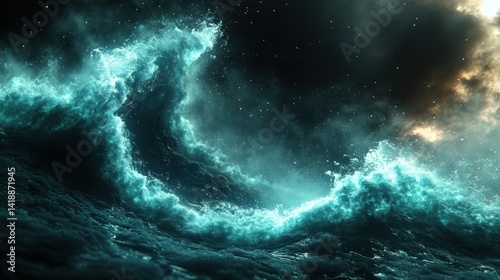 Futuristic blue digital wave flow glowing particles cyberpunk dark background technology motion abstract light pattern