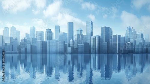futuristic city with skyscrapers reflecting in water