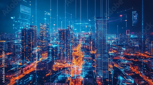 city, city landscape, futuristic, network, digital, technology, connection, communication, datum, information, building, skyscraper, light, night, urban, metropolis, modern, smart, intelligent, innovation, progress, future, global, earth, cyberspace, web, online, wireless, infrastructure, society, development, growth, advancement, evolution, transformation, energy, power, electric, glowing, vibrant, line