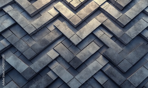 Futuristic, Concrete Mosaic Tiles arranged in the shape of a wall. Semigloss, Blocks stacked to create a Herringbone block background.