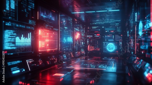 futuristic, digital, technology, interface, screen, datum, network, server, monitor, science, neon, glowing, blue, red, abstract, background, design, digital artwork, modern, artificial intelligence, cyber, high technology, innovation, future, computer, system, programming, coding, software, hardware, tech