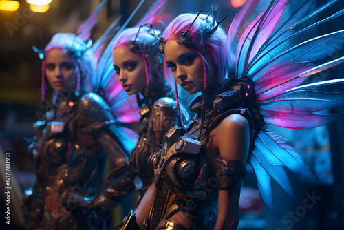 Futuristic cybernetic punk style fairies. Wallpaper.