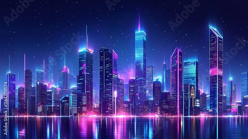 futuristic, city landscape, neon, night, urban, skyline, glowing, science fiction, skyscraper, architecture, vibrant, modern, technology, innovation, design, high technology, nightscape, illuminated, cyber, metropolis, advanced, holographic, city, building, skyscraper, sky, business, downtown, light, light, tower, building