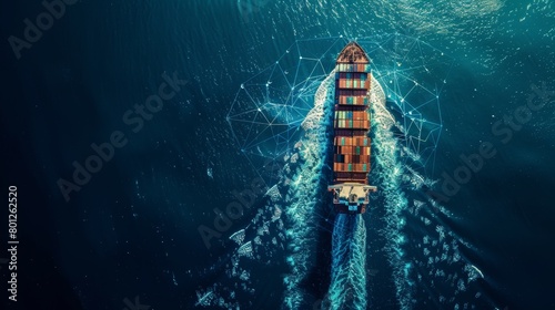 cargo ship, maritime, sea, shipping, logistic, futuristic, ocean, digital, cargo, transportation, vessel, innovation, freight, technology, connectivity, network, automated, tech, navigation, international trade, ai, generative, advanced technology, global, efficiency