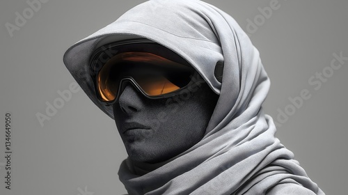 futuristic, desert, character, goggles, white, headscarf, concept, mask, science fiction, protection, future, fashion, apocalyptic, survival, costume, design, fictional, fantasy, wasteland, mysterious, faceless, warrior, helmet, arid, cinematic, fighter, visual, equipment, clothing, environment, adventure, dune, military, tactical, sunglasses, nomad, traveler, soldier, sand, enclosed, anonymous, science, fiction, dramatic, minimal, exotic