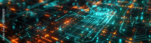 circuit, board, technology, futuristic, glow, blue, orange, light, datum, flow, intricate, transistor, transmission, signal, innovation, process, single, cyber, integrate, represent, modern, component, silicon, design, hardware