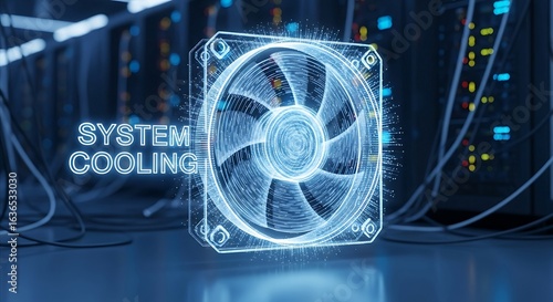 cooling, system, fan, digital, technology, server, datum, computer, hardware, network, holographic, glow, light, abstract, futuristic, blue, energy, line, particle, wireframe, illustration, render, virtual, efficiency, innovation, performance, infrastructure, processing, computing, engineering, ventilation, heat, management, power, electricity, circuit, information, operation, modern, future, design, graphic, concept, background, environment, room, rack, equipment, electronic