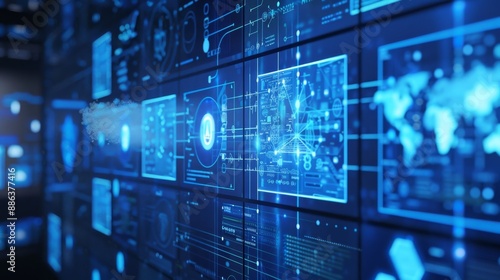 futuristic, digital, interface, datum, chart, screen, technology, network, system, software, database, information, monitoring, control, dashboard, cyberspace, modern, abstract, blue, glowing, line, shape, background, design, concept, illustration, three-dimensional, render, science fiction, future, innovation, progress, evolution, global, earth, cyberspace, web, communication, connection, artificial intelligence, ai