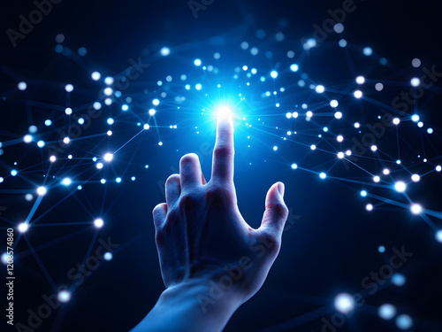 Futuristic digital network with glowing nodes, symbolizing advanced technology and global connectivity.