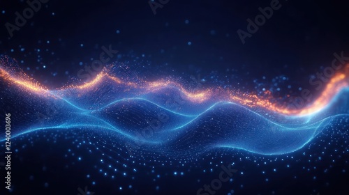 Futuristic Digital Wave Representation in Cyberpunk Art Style with Soft Blue Neon Lights and Glowing Particles