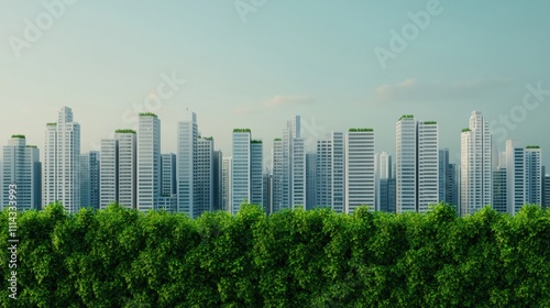 Futuristic eco-friendly city integrating greenery into buildings for urban sustainability