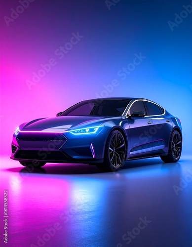 electric, car, vehicle, futuristic, design, neon, lighting, technology, modern, concept, luxury, speed, performance, innovation, automobile, styling, blue, purple, pink, image, rendering, three-dimensional, showroom, studio, photo