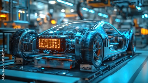 electric, vehicle, futuristic, factory, assembly, technology, innovation, manufacturing, automated, robotic, engine, chassis, wheel, part, modern, design, production, high technology, advanced, transportation, energy, sustainable, environmentally friendly, autonomous, smart, connectivity, interior, exterior, display, wiring, component, system, performance, speed, safety, engineering, research, development, automation, industrial, future
