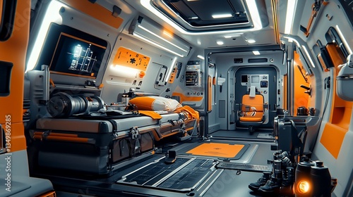 ambulance, medicals, vehicle, interior, futuristic, technology, hospital, emergency, transport, patient, care, equipment, design, modern, ambulatory, rescue, aid, rapid, response, trauma, first, medicine, health, safety, innovation, tech, hospitality, operating, room, bed, seat, screen, digital, display, monitoring, future, advancement