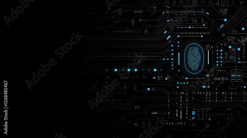 fingerprint, biometric, security, circuit board, technology, digital, datum, encryption, privacy, authentication, futuristic, abstract, background, pattern, dark, black, blue, line, glowing, network security, identity, verification, access, control, innovation, science, high technology, electronic, chips, microprocessor, integrated circuit, scan