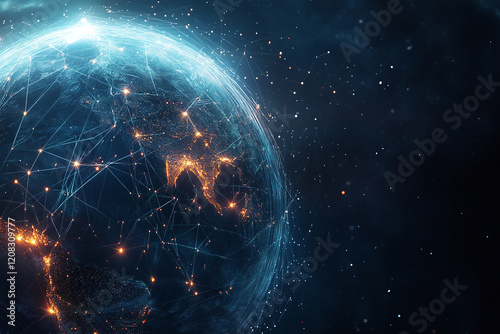 Futuristic Global Network with Digital Connections and Glowing Data Points in a Tech-Inspired Abstract Earth Design