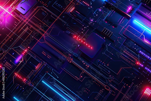 Futuristic glowing circuit board A futuristic abstract background with metallic and neon elements