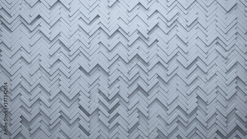 Futuristic, High Tech, light background, with a herringbone block structure. Wall texture with a 3D parquet tile pattern. 3D render