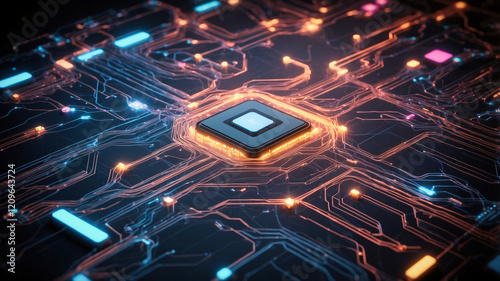 Futuristic high-tech circuit board layout